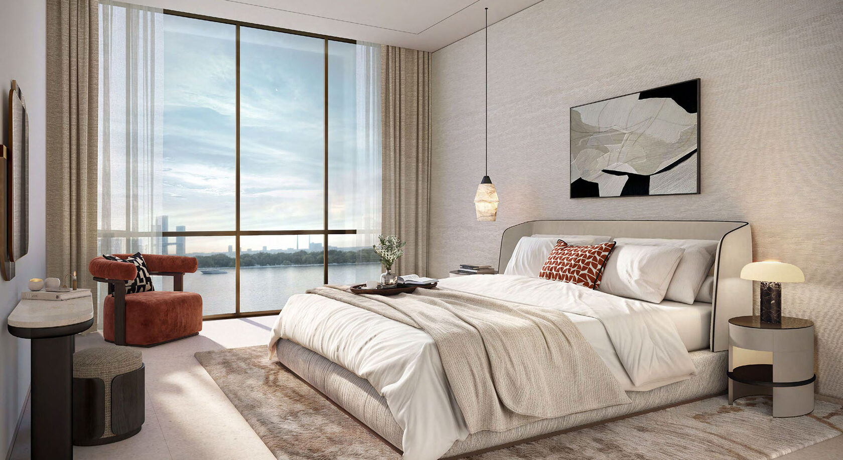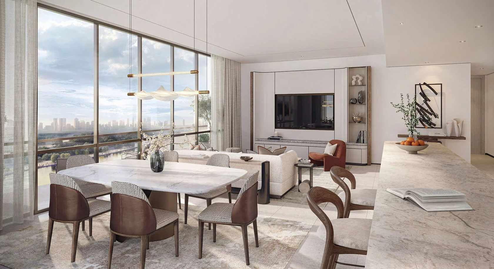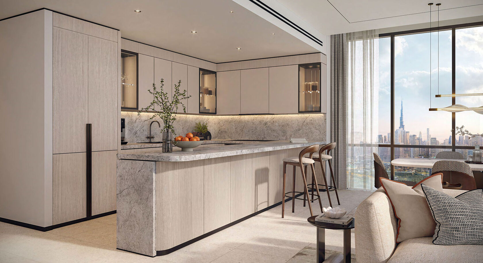 The Sky Villas redefine vertical living with soaring double-height interiors, sculptural staircases, and expansive private terraces that frame panoramic views of both the city skyline and the waterfront.