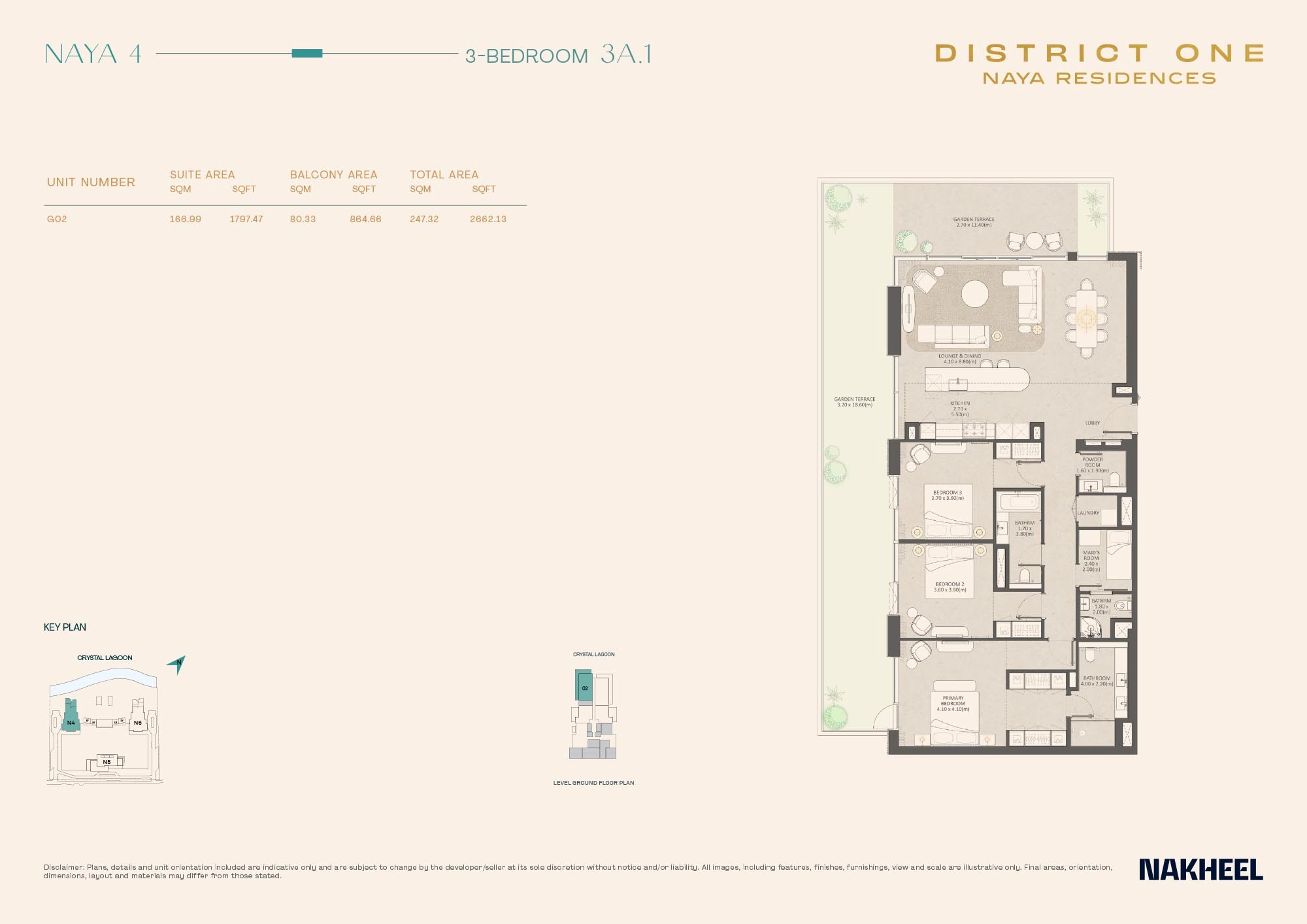 • A serene vibe around a 1.5-kilometer crystal lagoon, giving you year-round water views and chill moments by the shore.