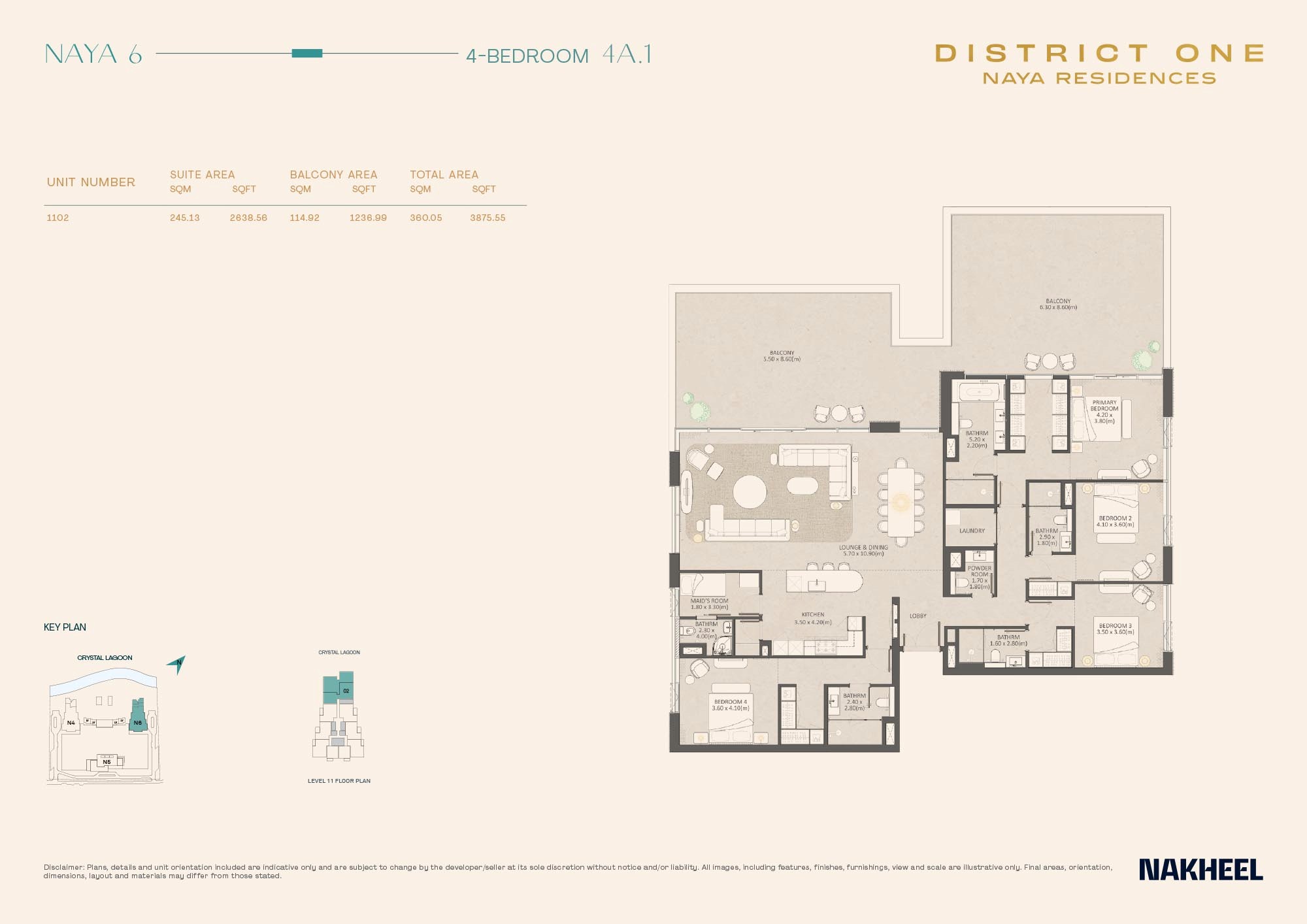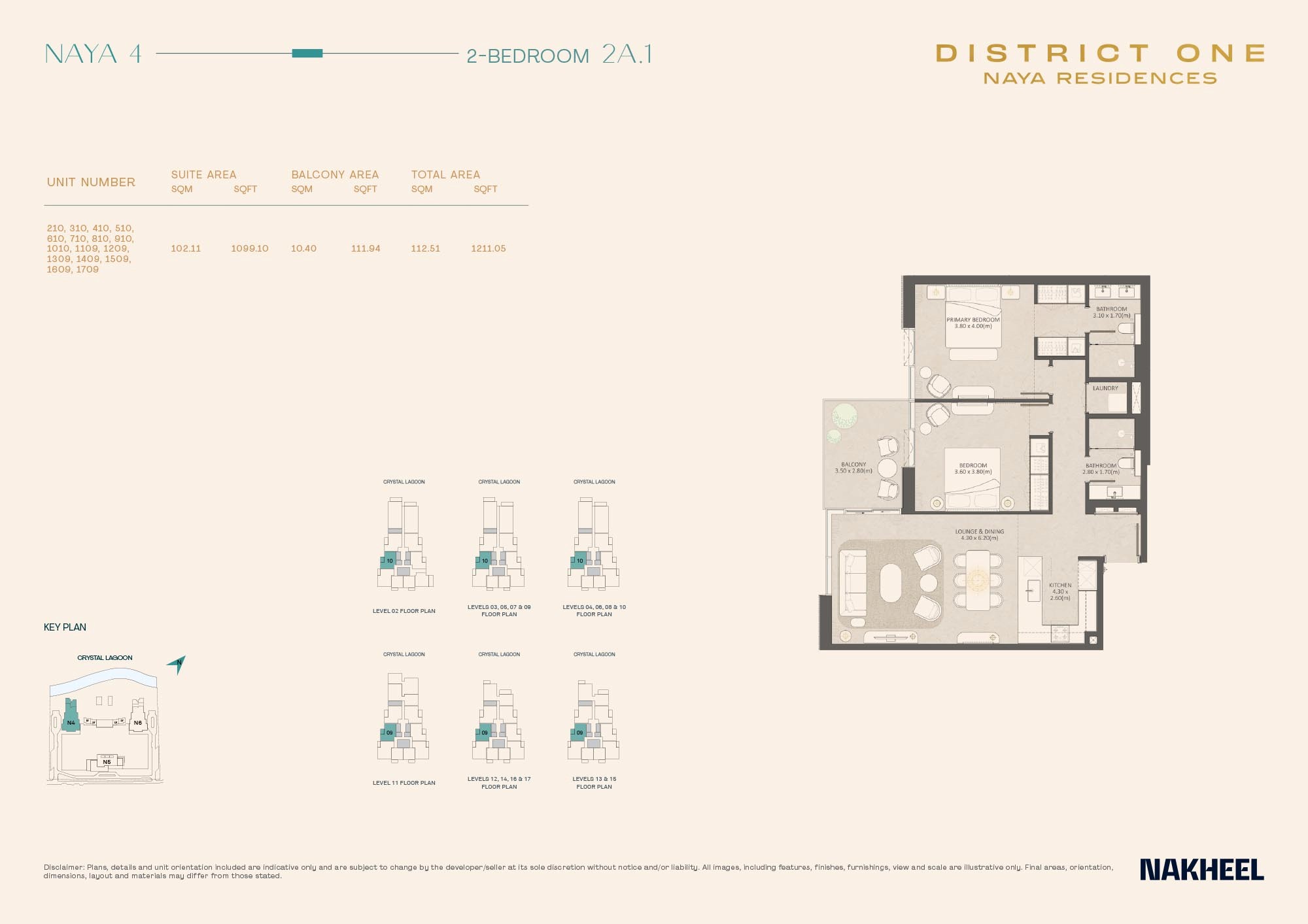 • A mix of 1-4 bedroom apartments, 3-bedroom lagoon villas, and 5-bedroom penthouses, all with big, airy spaces and fancy finishes that catch the eye.